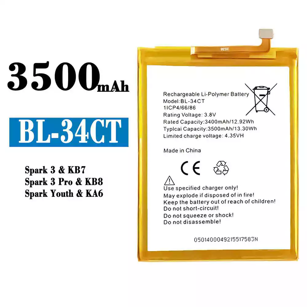 Batteri BL-34CT til Tecno Spark 3 / KB7 / Spark 3 Pro / KB8 / Spark Youth / KA6