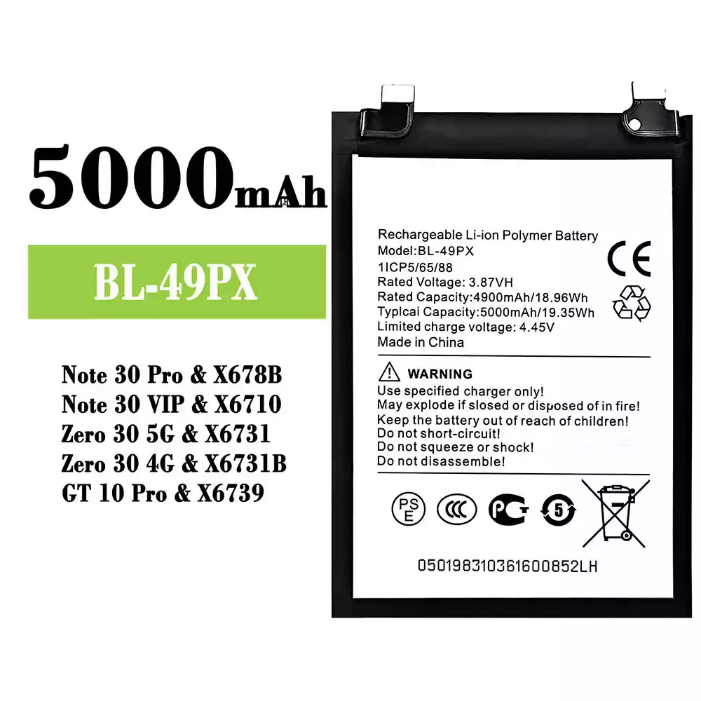 Batteri BL-49PX til Infinix Note 30 Pro / X678B / Note 30 VIP / X6710 / Zero 30 5G / X6731 /Zero 30 4G / X6731B / GT 10 Pro / X6739