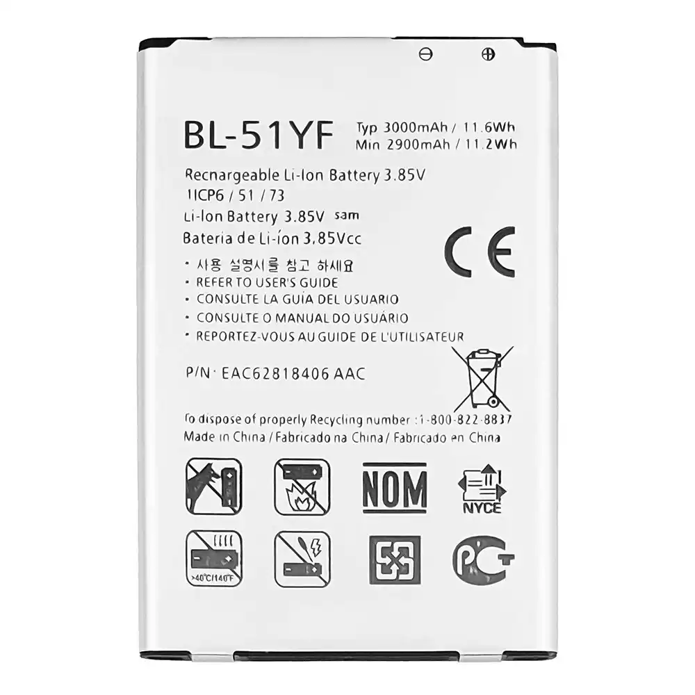 Batteri BL-51YF til LG G4 / H815 / H815TR / H815T / H815P / H812 / H810 / H811 / LS991 / VS986 / US991 / F500L / F500S / F500K / G4 Stylus / H631 / H540 / H635 / MS631 / H630D / H542 / H630 / G4 Dual / H818 / H818N