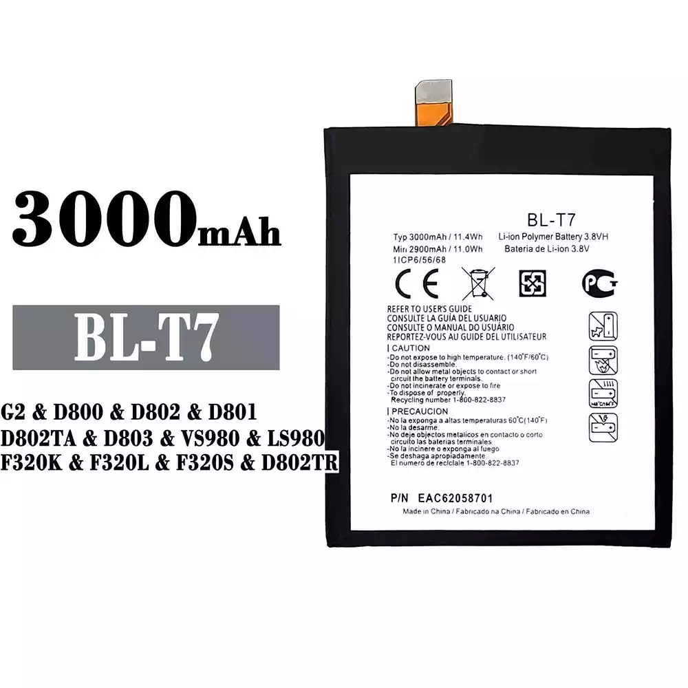 Batteri BL-T7 til LG G2 / D800 / D802 / D801 / D802TA / D803 / VS980 / LS980 / F320K / F320L / F320S / D802TR