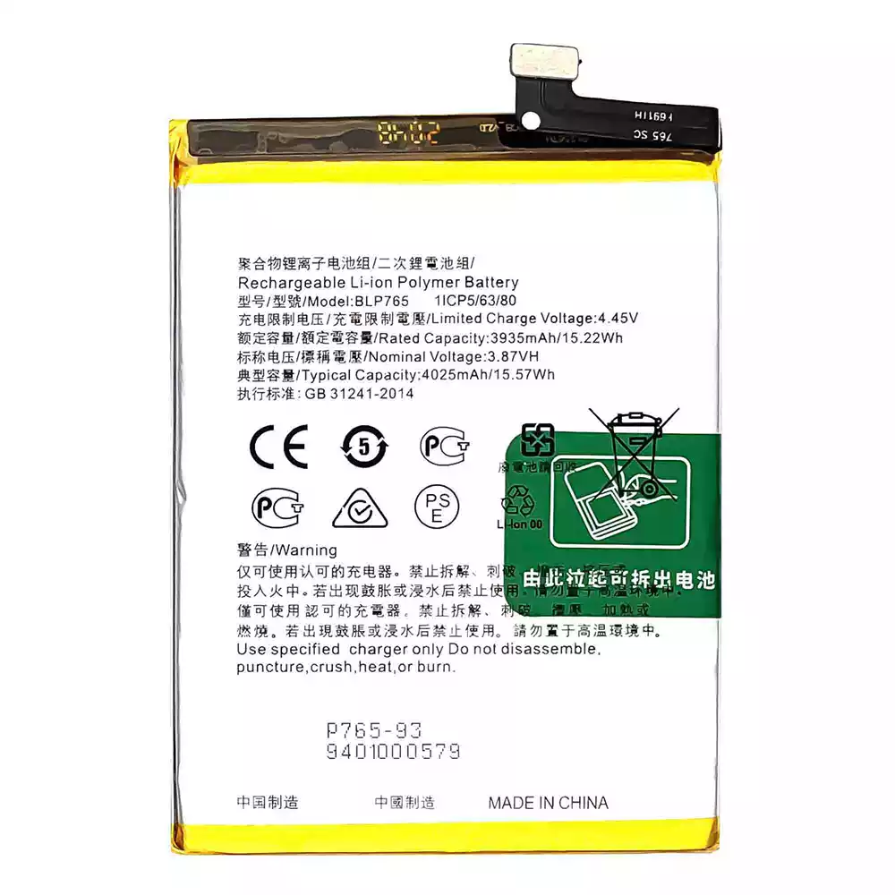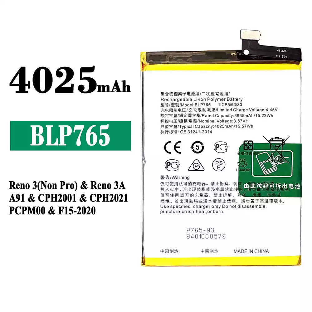 Batteri BLP765 til OPPO Reno 3(Non Pro) / Reno 3A / A91 / CPH2001 / CPH2021 / PCPM00 / F15-2020
