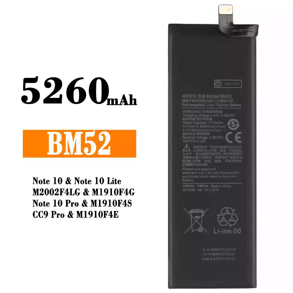 Batteri BM52 til Xiaomi Note 10 / Note 10 Lite / M2002F4LG / M1910F4G / Note 10 Pro / M1910F4S / CC9 Pro / M1910F4E