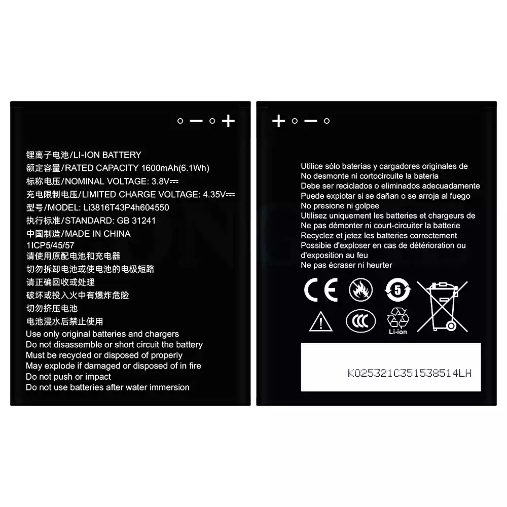 Batteri Li3814T43P4h604550 til ZTE Blade L130/Z2335CA/Grand MAX 4550