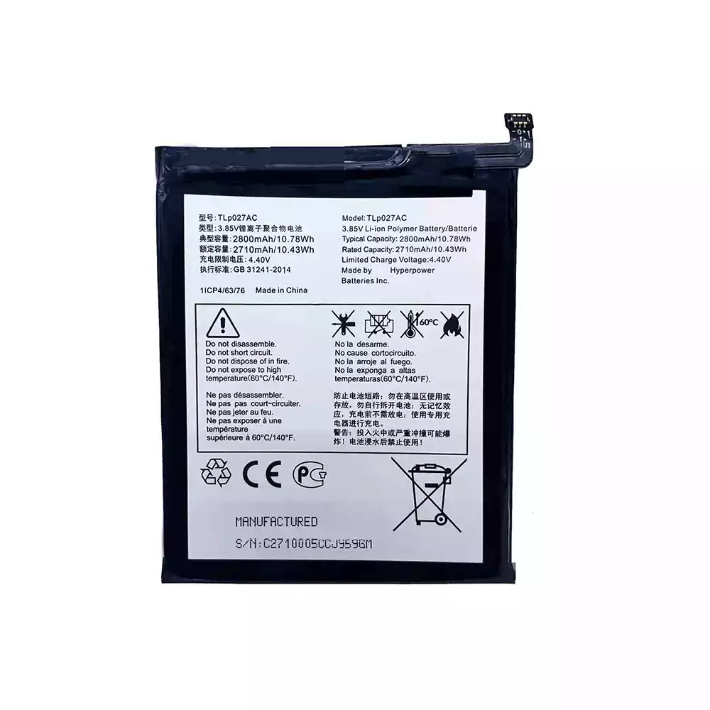Batteri TLP027AC til Alcatel A5 5085D/Y 6085D OT5085C